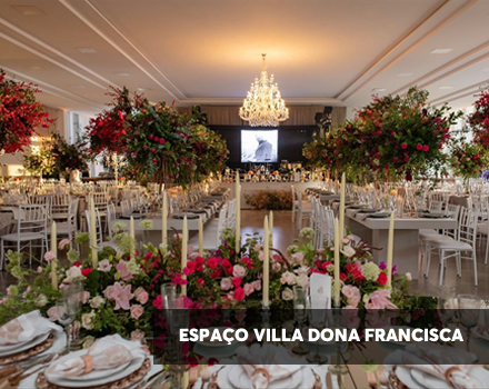 Nós oferecemos dois espaços exclusivos: Espaço Villa Dona Francisca e Espaço Água Clara, cuidadosamente projetados para transformar seu evento em uma experiência memorável, com excelência, sofisticação e contato com a natureza.